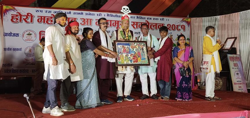 होली पर्वका अवसरमा जनकपुरधाममा मिथिला नाट्यकला परिषद् (मिनाप)ले आयोजना गर्दै आएको सांस्कृतिक कार्यक्रम ‘महामूर्ख सम्मेलन’ को दोस्रो दिन आज मुख्यमन्त्री सिंहलाई महामूर्खको उपाधि प्रदान गरेको हो । मुख्यमन्त्री सिंहले स्वास्थ्य क्षेत्रमा गरेका कार्यहरूको प्रशंसा गर्दै उहाँलाई ठट्टास्वरुप महामूर्खको उपाधि प्रदान गरिएको हो ।