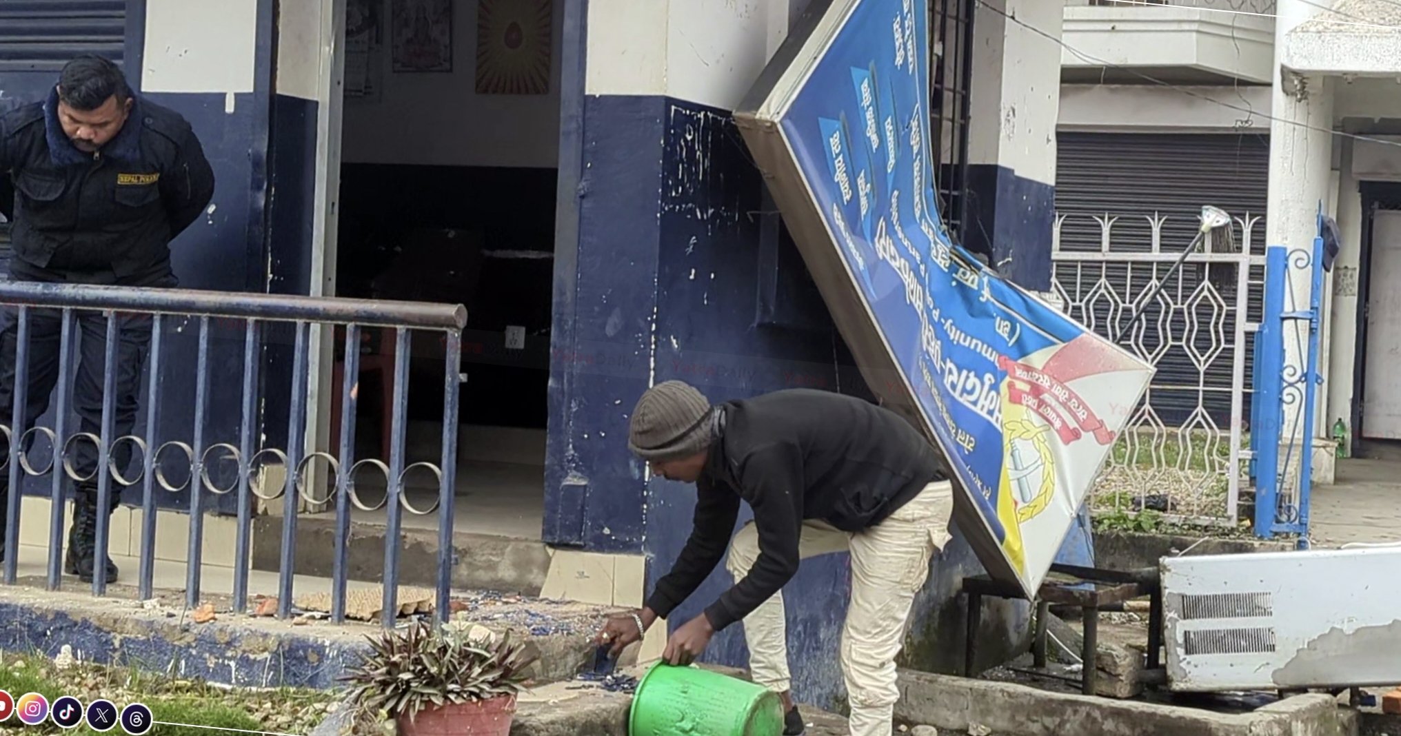 आक्रोशित प्रदर्शनकारीहरूको समूह श्रीराम हल नजिकैको प्रहरी बिटमा पुगेको र त्यहाँ व्यापक तोडफोड गरेपछि प्रहरीले अश्रुग्याँस प्रहार गरेको बताइएको छ । प्रहरी बिटको फर्निचर, कागजात र अन्य सामग्रीहरूमा क्षति पुगेको छ ।