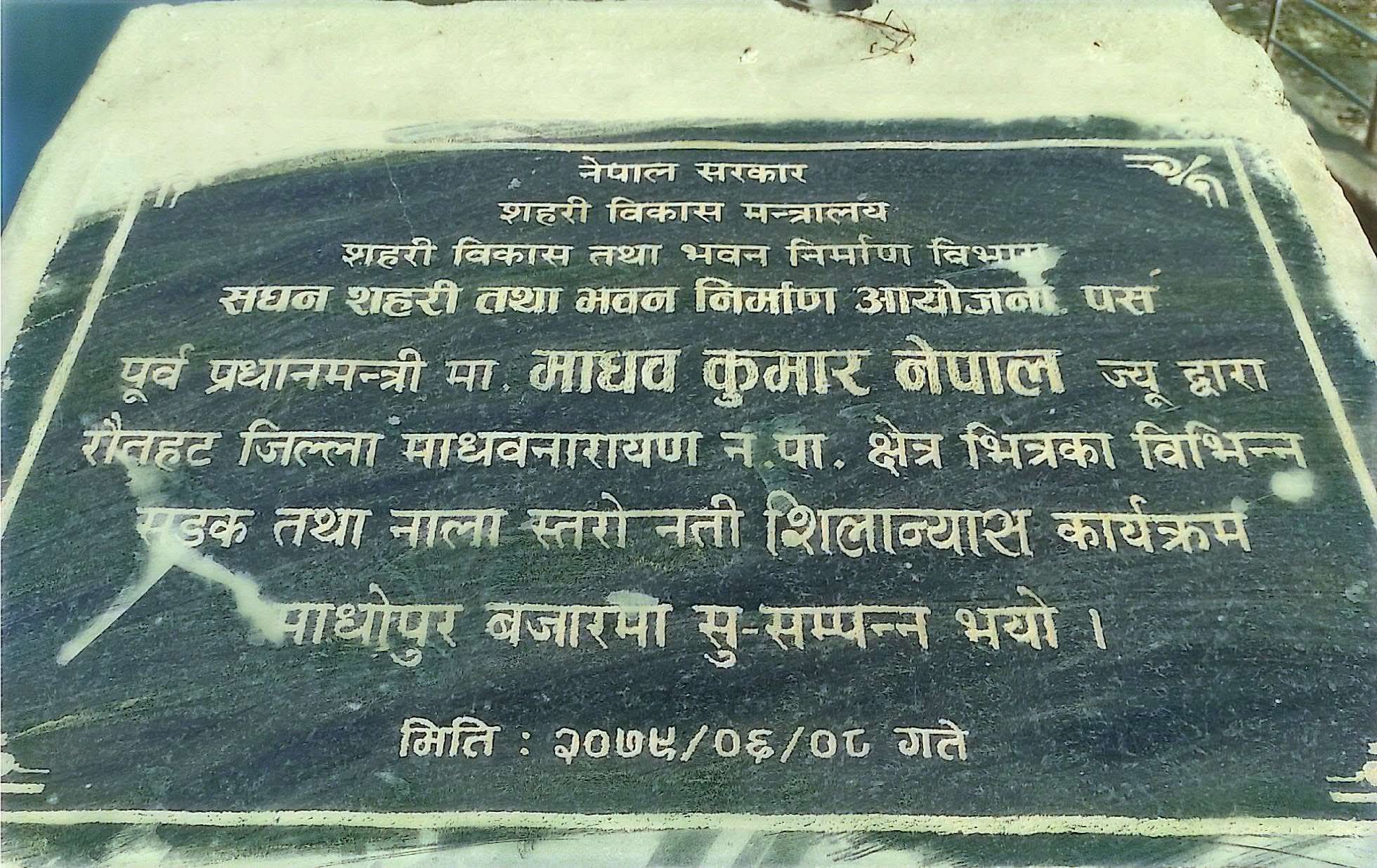 रौतहट, २२ माघ । माधव नारायण नगरपालिका–६ स्थित माधोपुरबाट रजबडा जाने सडक तीन वर्षअघि शिलान्यास भए पनि हालसम्म निर्माण कार्य सुरु हुन सकेको छैन। पूर्वप्रधानमन्त्री तथा रौतहट क्षेत्र नं. १ का तत्कालीन सांसद माधव कुमार नेपालले भव्य समारोहका बीच शिलान्यास गरेको उक्त सडक योजना कार्यान्वयन नहुँदा शिलान्यासमै सीमित बनेको हो।