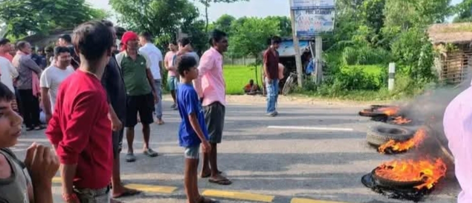 कलैया बिरगंज सडक खण्ड सवारी दुर्घटना : मोटरसाइकल चालकको मृत्युपछि स्थानीय आन्दोलित, टायर बालेर प्रदर्शन