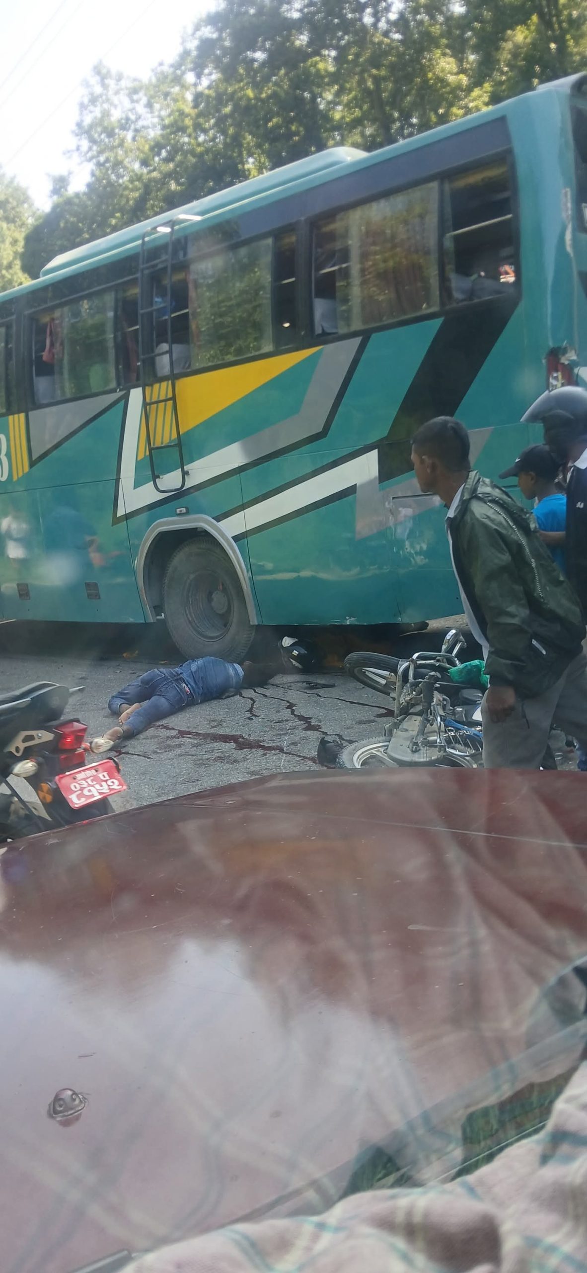 चुरियामाई छेउमा बसको ब्रेक फेल, ब्याक हुँदा दुई मोटरसाइकललाई किच्यो